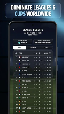Le jour du match, FootLord vous immerge au cœur de l'action. Ressentez l'adrénaline en prenant des décisions cruciales en temps réel, modifiant le cours du jeu et électrisant vos supporters à chaque triomphe. Que vous soyez un stratège minutieux souhaitant contrôler chaque passe et substitution, ou que vous préfériez observer l'évolution de votre équipe en automatisant les tactiques, l'expérience s'adapte à votre style. Parcourez des saisons entières en un clin d'œil grâce à la simulation rapide, vous permettant de voir votre club grandir et s'adapter, match après match. Mais la domination ne s'arrête pas là : mesurez-vous aux légendes du football dans les championnats et coupes les plus prestigieux. Analysez les forces et faiblesses de vos adversaires avant chaque rencontre pour affiner vos stratégies et les mener à la victoire.