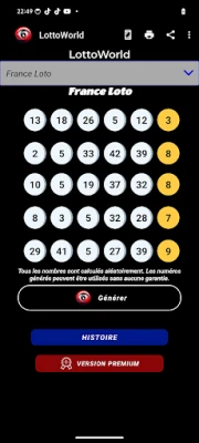LottoWorld génère des numéros aléatoires pour les loteries du monde entier. Optimisez vos chances pour France Loto, Eurojackpot, Mega Millions et bien d'autres systèmes. L'application est régulièrement mise à jour avec de nouvelles options pour vous accompagner.