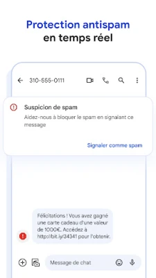 Exprimez pleinement votre personnalité grâce à des touches uniques. Créez des dialogues mémorables en personnalisant les couleurs de vos bulles de chat et amusez-vous à envoyer des selfies GIF créatifs. La confidentialité est au cœur de Google Messages : vos échanges personnels avec vos correspondants utilisant Google Messages sont protégés par un chiffrement de bout en bout, assurant que seuls vous et votre interlocuteur avez accès à vos messages et pièces jointes. Profitez d'une tranquillité d'esprit renforcée par une protection avancée contre le spam.