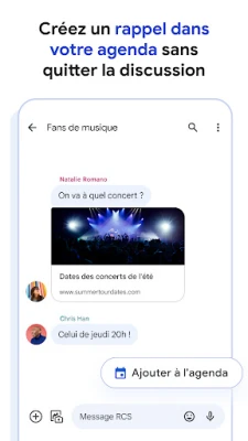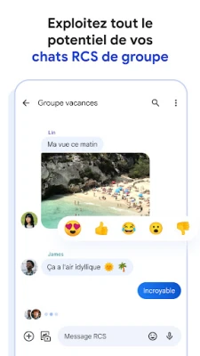 Google Messages, l'application officielle de Google, transforme vos conversations. Grâce aux RCS, partagez des photos et vidéos haute résolution, participez à des chats de groupe dynamiques et communiquez fluidement avec tous, y compris les utilisateurs d'iPhone.