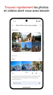 Au-delà de la retouche, Google Photos excelle dans l'organisation et le partage. Laissez l'application désencombrer votre galerie en regroupant intelligemment les doublons et les photos similaires, tout en proposant des dossiers intuitifs pour vos captures d'écran, documents et albums personnalisés. Préservez votre intimité avec le dossier verrouillé, sécurisé par le verrouillage de votre appareil, pour les contenus sensibles. Revivez vos histoires avec des sélections automatiques de vos meilleurs moments, et partagez-les sans effort avec qui vous voulez, même si vos proches n'utilisent pas Google Photos. Et pour toucher vos souvenirs, transformez vos clichés préférés en livres photo, tirages et toiles murales, disponibles dans certaines régions. Élargissez votre perspective avec Google Lens intégré, capable d'identifier et d'interagir avec le monde à travers vos images.