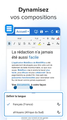 MobiOffice redéfinit la productivité en déplacement, transformant votre appareil en un centre de travail complet. Cette suite bureautique polyvalente met à votre disposition des outils puissants pour gérer sans effort documents, feuilles de calcul et présentations. Bénéficiez d'une expérience familière inspirée des interfaces que vous connaissez, tout en exploitant des fonctionnalités avancées : formatage précis, suivi des modifications, formules complexes et un mode de présentation immersif. En parallèle, MobiOffice excelle dans la gestion avancée des PDF, vous permettant d'ouvrir, d'annoter, de remplir des formulaires interactifs et de signer numériquement vos documents avec une sécurité renforcée, sans oublier la conversion aisée vers d'autres formats essentiels.