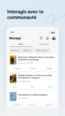 Embarquez dans votre odyssée créative avec une confiance inégalée. TikTok Studio révolutionne la conception de contenu, offrant des fonctionnalités avant-gardistes qui éveillent votre imagination et maximisent l'engagement de chaque publication. Que vous soyez un créateur aguerri ou que vous débutiez, bénéficiez de recommandations sur mesure et de tutoriels clairs qui vous guident pas à pas. Gérez sans effort vos interactions, commentaires et publications depuis un hub centralisé, tandis que des aperçus détaillés sur les préférences de votre audience vous permettent d'affiner votre stratégie, cultivant ainsi une communauté florissante et dévouée.