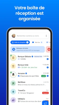 Découvrez un écosystème de fonctionnalités intuitives conçues pour simplifier votre quotidien. La messagerie intelligente de Truecaller identifie automatiquement les expéditeurs de SMS inconnus et bloque avec une précision chirurgicale tous les messages indésirables et de télémarketing, y compris ceux basés sur un nom ou une série de numéros. Vous pouvez également échanger gratuitement avec vos amis et votre famille directement au sein de l'application. Pour les appels, Truecaller vous offre la meilleure identification d'appel au monde, affichant le nom des appelants inconnus avant même que votre téléphone ne sonne et enrichissant votre historique d'appels. Bloquez efficacement les démarcheurs téléphoniques et partagez instantanément votre position, des émojis ou votre statut avec vos contacts grâce à la Messagerie Flash. Pour une tranquillité d'esprit absolue, sauvegardez sans effort l'intégralité de votre historique d'appels, contacts, messages et paramètres sur Google Drive.